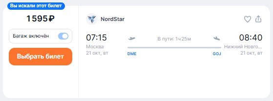 ✈️Москва - Нижний Новгород, прямой рейс с багажом за 1600 рублей