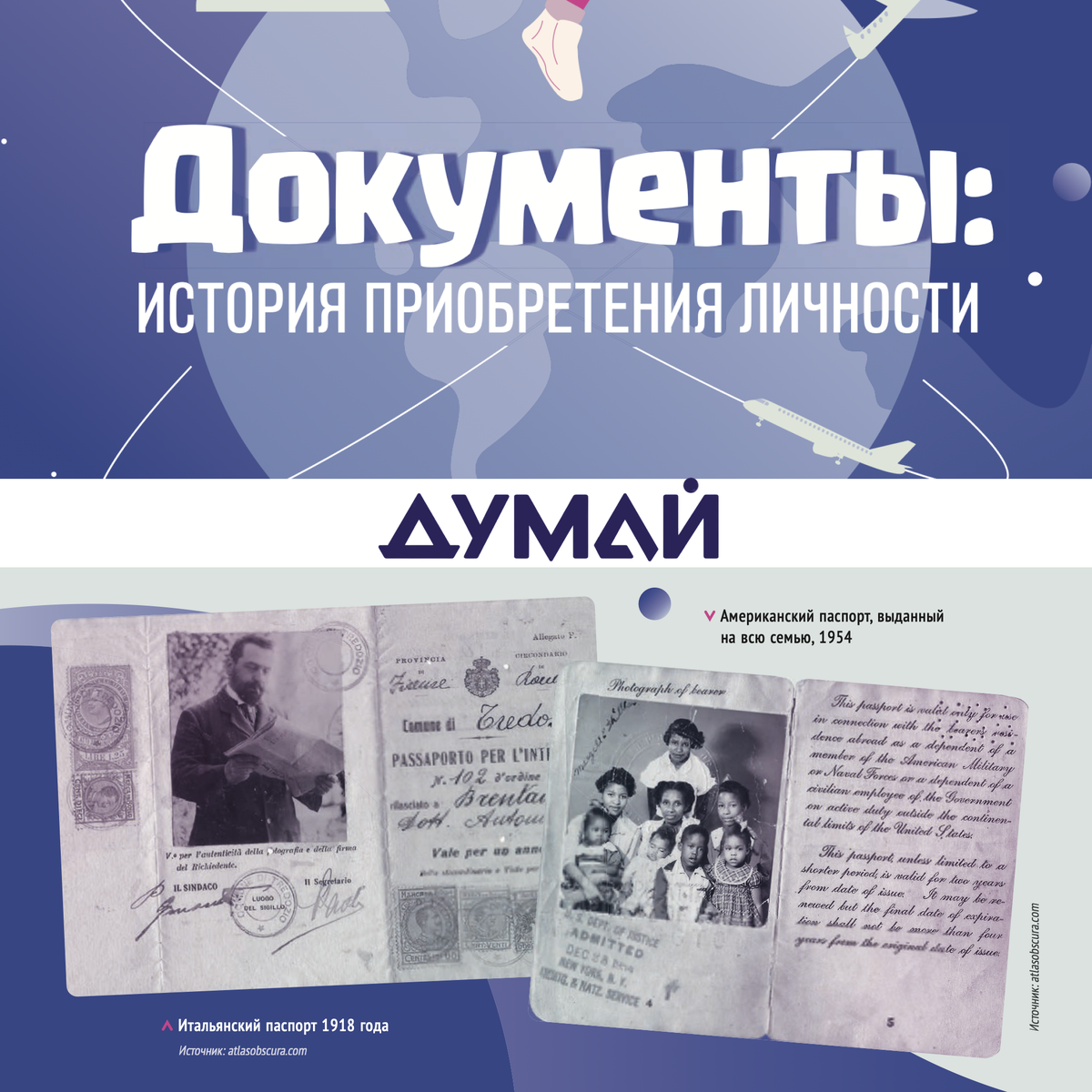 🛂 Кажется, что паспорт был всегда? А вот и нет! Всего несколько веков назад у большинства людей не было не только паспорта, но даже фамилии и собственной подписи! С чего всё началось? Первые «паспорта» были нужны не для того, чтобы доказать, кто ты, а чтобы показать, под чьей ты защитой. Это были письма от царей и королей с просьбой обеспечить безопасный проход для их подданного. Имя путешественника в них часто даже не упоминалось! Интересные факты из истории: • Без фото и описания. Самые первые паспорта можно было передать любому — ведь в них не было ни фотографии, ни описания внешности владельца. • Паспорт для фараона. В 1974 году мумию фараона Рамсеса II перевозили в Париж. Для этого ему... оформили настоящий египетский паспорт! В графе «род занятий» указали «король (умерший)». 👑 • Фото с питомцем. Когда в документы начали вклеивать фотографии (с 1915 года), никаких правил не было. Люди фотографировались с собаками, верхом на лошади или с любимой книгой. • Подпись — право