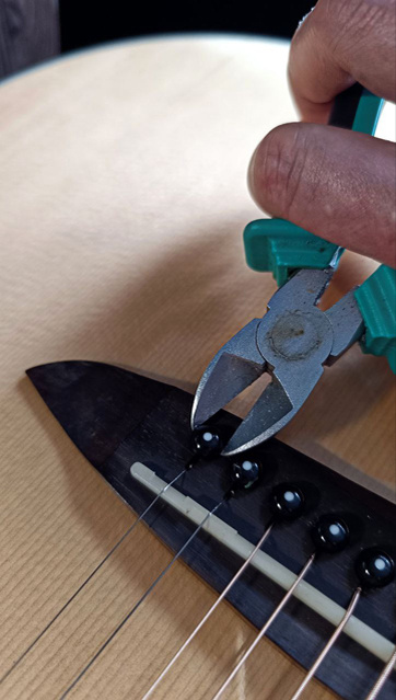 После того, как вы вытащили все пины, можно вынуть струны и намотать их вокруг колков. Но я обычно не заморачиваюсь и не наматываю, просто вытаскиваю и пусть себе болтаются.