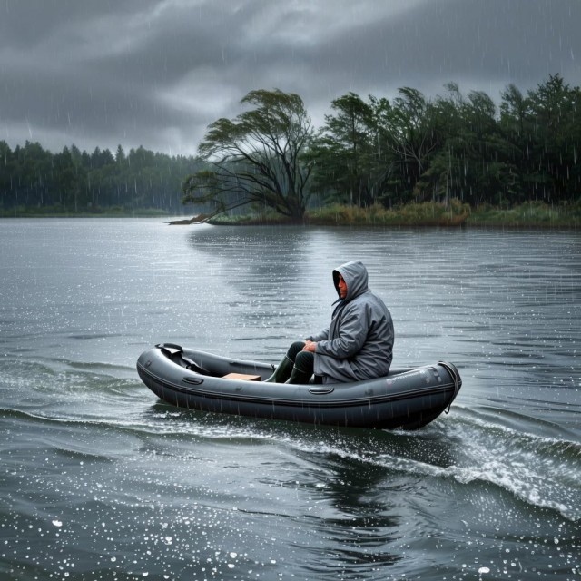 И чего делать? Я перевернул лодку вверх дном и сидел так, укрывшись ей от дождя. Воду из сапог вылил, одежду как мог выжал. Черепашка-гимнаст, ей-богу. Мокрую одежду обратно на себя натянул, поматерился для сугреву и притих. Поначалу зуб на зуб не попадал, но потом даже потеплело. Если не двигаться. Плёнка дождевика окутала меня, как родная мать, и тепло тела мало-помалу прогрело замёрзшее до синевы туловище. Век бы так сидел! Дождь барабанит по лодке, а я сижу на полупустом вещмешке и сундучке с наживками. Пригрелся, как воробей в луже. Единственное, что гадкий ветер всё хотел вырвать у меня злосчастную лодку...