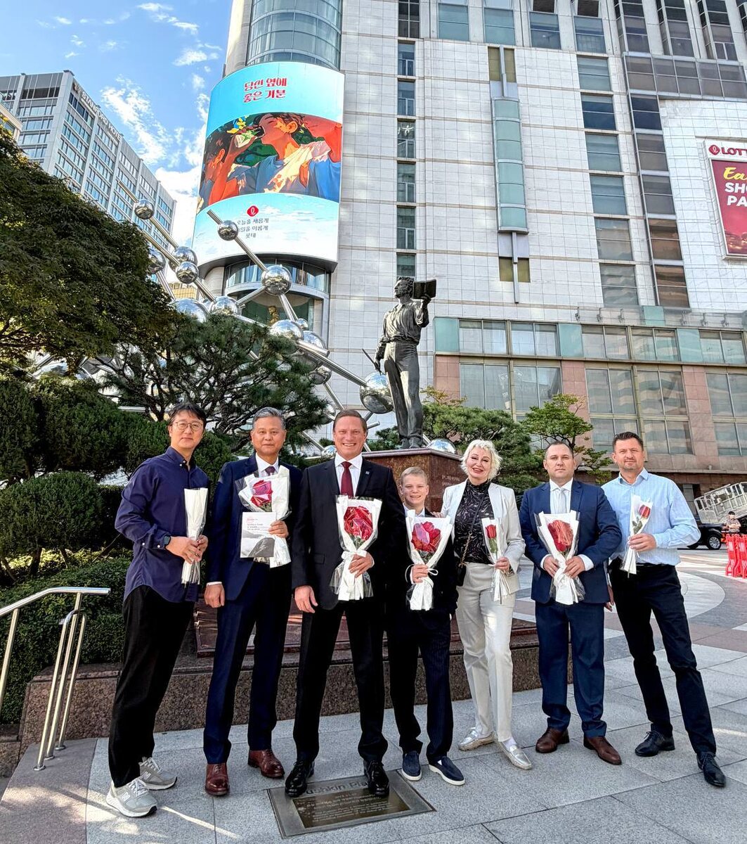 В Стране утренней свежести сегодня русское утро. В центре Сеула встретились Константин Майор, основатель и владелец МАЕР, его сын Вадим и президент LG Electronics в России и СНГ Енг Нам Ро — чтобы возложить цветы к памятнику Пушкина. Ро признался, что именно главный русский поэт вдохновил его на собственный сборник притч. Константин Майор ответил ему в тон стихами. «Гвоздики» не без удовольствия отмечают — и в Сеуле памятник Пушкину остается местом поэтичных встреч.