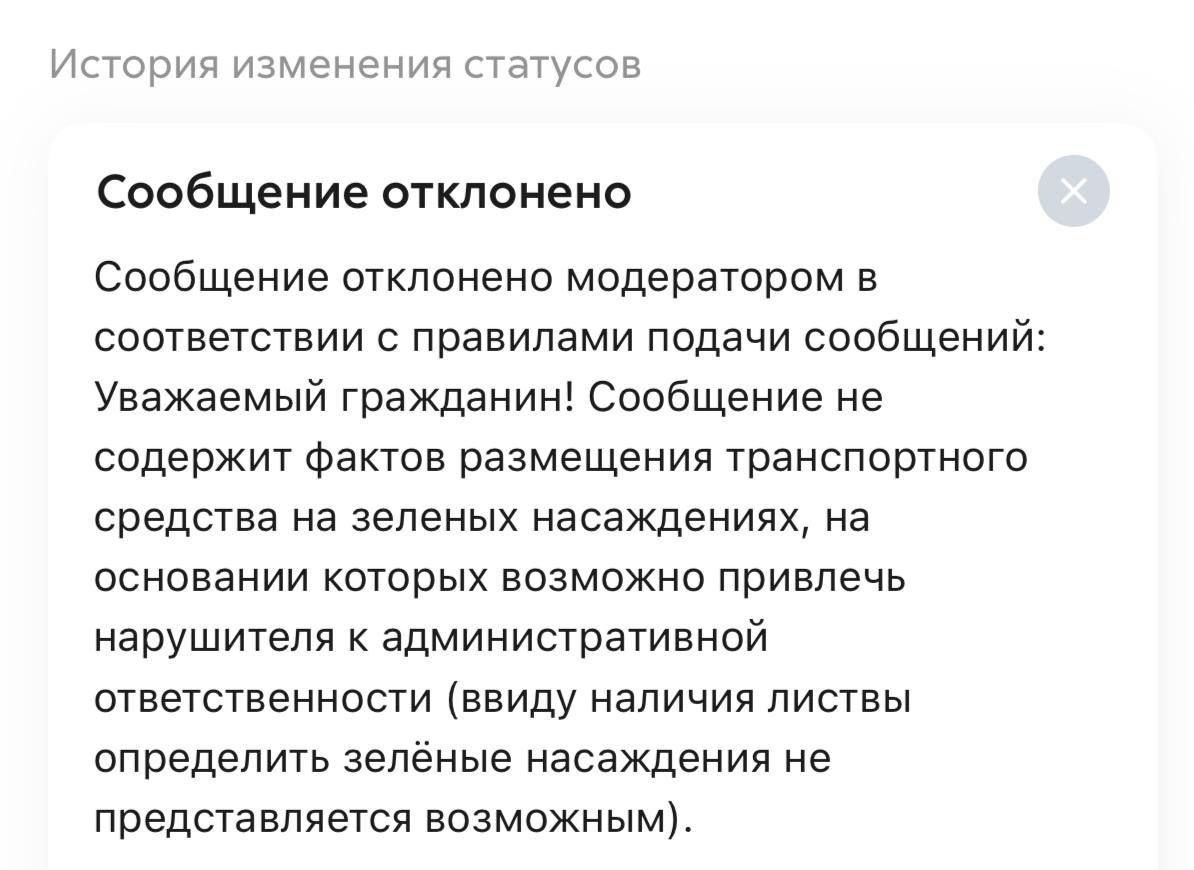 🗣Подписчики сообщают, что Добродел стал отклонять жалобы на парковку на газоне
