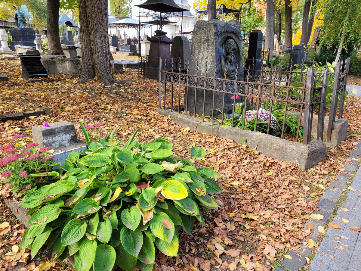 4 участок На переднем плане - Ласточкины, за оградой - архитектор Воскресенский и Корины. Катя Ласточкина (1910-1921) и А.И. Ласточкина Сергей Флегонтович Воскресенский (1862-1933) — архитектор. На надгробии горельефная композиция «Оплакивание Христа», которую разработал в XIX веке Вацлав (Вячеслав Антонович) Кафка. Серафима Сергеевна Корина (1870-1954) — вдова художника А.М. Корина; дочь художника пейзажиста С.Н. Аммосова и племянница архитектора С.Ф. Воскресенского.