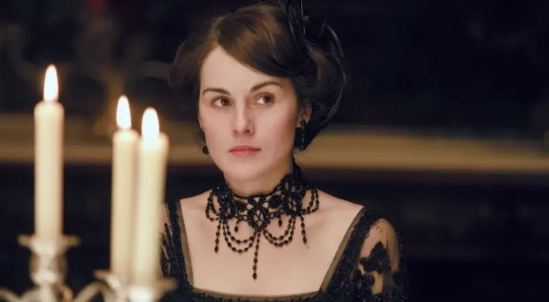 Например, насыщенные и тёмные цвета. Красный, в том числе тёмно-красный, синий, чёрный всякий раз добавляют в образ леди Мэри больше «драмы» и изумительно на ней смотрятся. Интересно, что подход к тому, как должны одеваться женщины разных возрастов, серьёзно изменился к началу XX века. Уместными для незамужних девиц считались цвета светлые, пастельные, и, конечно, белый. Выходя замуж, женщина начинала одеваться ярче. Ну а сдержанные тона, в том числе чёрный, были уместны в гардеробе женщина пожилых. Однако ко временам юности Мэри и её выходу в свет ситуация понемногу изменилась, и чёрные платья, особенно вечерние, проникли даже в гардеробы незамужних девушек, что ранее было просто немыслимо. Так что цветовая гамма нарядов леди Мэри, среди которых есть самые разные, но именно насыщенных и тёмных оттенков довольно много, вполне реалистична – и отлично подчёркивает резкий характер героини.