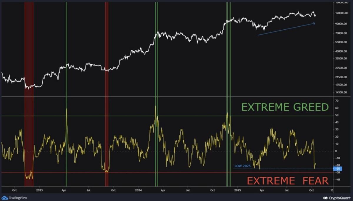 πΈΠΠ½Π°Π»ΠΈΡΠΈΡΠ΅ΡΠΊΠ°Ρ ΠΏΠ»Π°ΡΡΠΎΡΠΌΠ° Cryptoquant: ΠΠ·ΠΌΠ΅Π½Π΅Π½ΠΈΠ΅ ΠΎΡΠΊΡΡΡΠΎΠ³ΠΎ ΠΈΠ½ΡΠ΅ΡΠ΅ΡΠ° Π΄ΠΎΡΡΠΈΠ³Π»ΠΎ ΠΌΠΈΠ½ΠΈΠΌΡΠΌΠ° 2025 Π³ΠΎΠ΄Π° β ΠΎΡΠ΅Π½Ρ Π±Π»ΠΈΠ·ΠΊΠΎ ΠΊ Π·ΠΎΠ½Π΅ ΡΠΊΡΡΡΠ΅ΠΌΠ°Π»ΡΠ½ΠΎΠ³ΠΎ ΡΡΡΠ°Ρ
