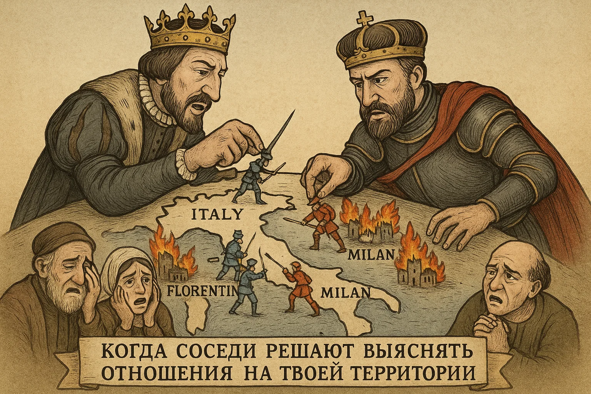 Италия, где раньше всех началось Возрождение, к XVI веку переживала упадок. Эта слабость и богатство сделали Италию лакомым куском для более сильных соседей. Начались Итальянские войны (1494-1559 гг.), в которых за контроль над Апеннинским полуостровом сражались Франция и Испания (во главе с императором Карлом V). Война закончилась полным опустошением Италии. В 1527 году имперские войска даже разграбили Рим. В итоге большая часть Италии попала под власть Испании, что еще больше затормозило её объединение. Германия в XVI веке официально называлась Священной Римской империей германской нации, но это было лишь громкое название. На деле это был "союз" из 350+ практически независимых государств: княжеств, герцогств, вольных городов. В итоге, пока Англия и Франция становились едиными нациями, Германия оставалась "географическим понятием", раздираемым внутренними противоречиями. Для большинства славянских народов это было тяжёлое время, когда они оказались под властью могущественных соседей.