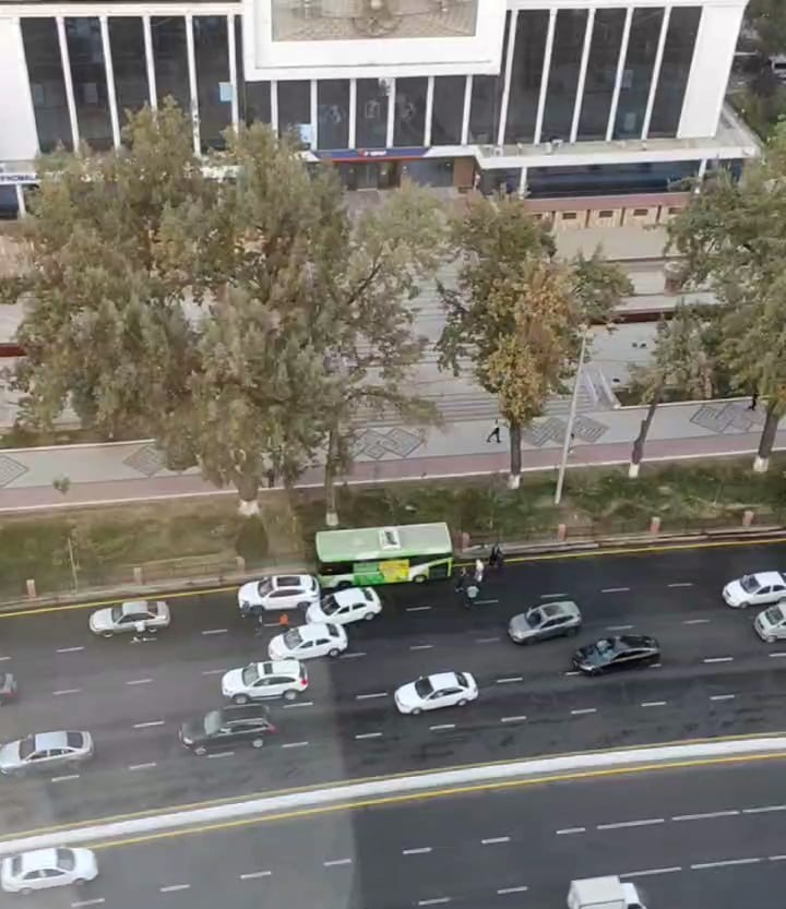 Vaib.uz (Узбекистан. 17 октября). Сегодня, 17 октября, в соцсетях распространились тревожные фотографии с места ДТП в центре Ташкента. На кадрах — автобус, врезавшийся в несколько автомобилей и бордюр на обочине недалеко от здания Главпочтамта. Как сообщили в пресс-службе «Тошшахартрансхизмат», инцидент произошёл около 16:35 на улице Шахрисабз в Юнусабадском районе. Водитель автобуса марки Saz Le-60, работающий на маршруте №26, не учёл, что дорожное покрытие было полито водой, не выдержал безопасную дистанцию и столкнулся с автомобилем Cobalt, двигавшимся впереди. Из-за удара Cobalt по инерции врезался в следующий за ним автомобиль марки BYD. После этого автобус потерял управление, выехал за пределы проезжей части и врезался в бордюр. По предварительным данным, никто из участников происшествия не пострадал, однако автобус и легковые автомобили получили технические повреждения. Поделись нашей статьей