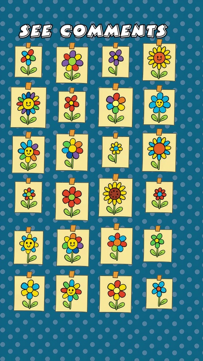 Можешь найти цветок, который я нарисовал? У него семь лепестков: три красных, три синих и еще один, но он не желтый