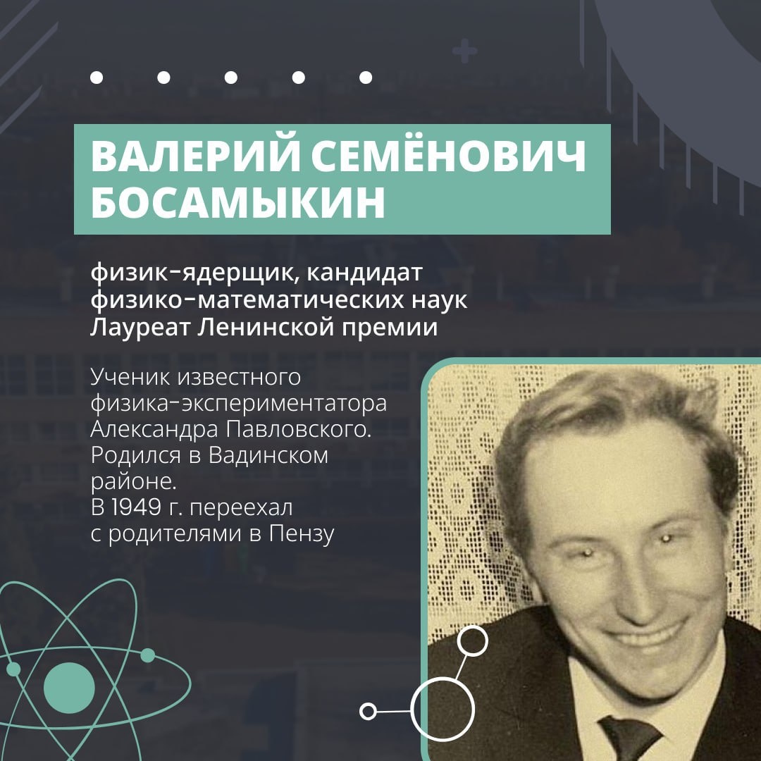 Генеральный директор ОАО «Маяк», депутат ЗС области Владимир Вдонин помог жителям Вадинского района увековечить память своего земляка, физика-ядерщика, лауреата Ленинской премии Валерия Семеновича Босамыкина. Жители Сошниковки Вадинского района, родственники знаменитого ученого обратились к Владимиру Васильевичу с просьбой установить памятную табличку в честь Валерия Босамыкина. Ученый внес значительный вклад в разработку импульсных ускорителей и исследования для ракетной отрасли. Благодаря содействию директора бумажной фабрики «Маяк» табличка появилась на въезде в село, и теперь память о выдающемся ученом, авторе более 300 научных работ, будет сохранена для будущих поколений. ✅ Подписаться 📲 Подписаться на нас в МАХ