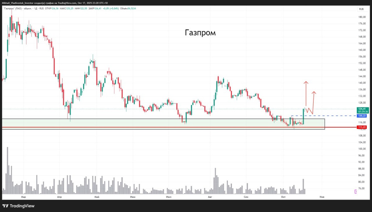 ФИНАНСОВОЕ ПОЛОЖЕНИЕ "ГАЗПРОМА" СТАБИЛЬНО И НАДЕЖНО $GAZP ГАЗПРОМ ОСНОВНУЮ ЧАСТЬ ЗАТРАТ ФИНАНСИРУЕТ ЗА СЧЕТ ОПЕРАЦИОННОГО ДЕНЕЖНОГО ПОТОКА - МИЛЛЕР Моё мнение: Одна из немногих акций, за которой пристально наблюдаю. Очень уверенно оттолкнулись от глобальной поддержки на крупной свече и повышенном объеме. Пробили предыдущий максимум 120. Можно будет поискать покупки на младшем таймфрейме #GAZP #акции #лонг