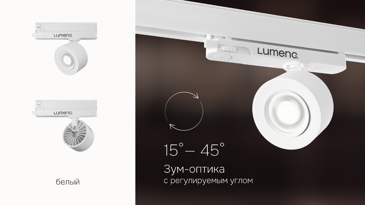 Светильник ROTA оснащён зум-оптикой с возможностью изменения угла от 15° до 45°. Это даёт возможность адаптировать освещение под разные сценарии и задачи: от акцентного света до мягкого общего. Цветопередача Ra>90 гарантирует естественное воспроизведение оттенков, а выбор цветовой температуры позволяет создать нужную атмосферу для каждого типа пространства — от тёплой камерности до нейтрального профессионального света.