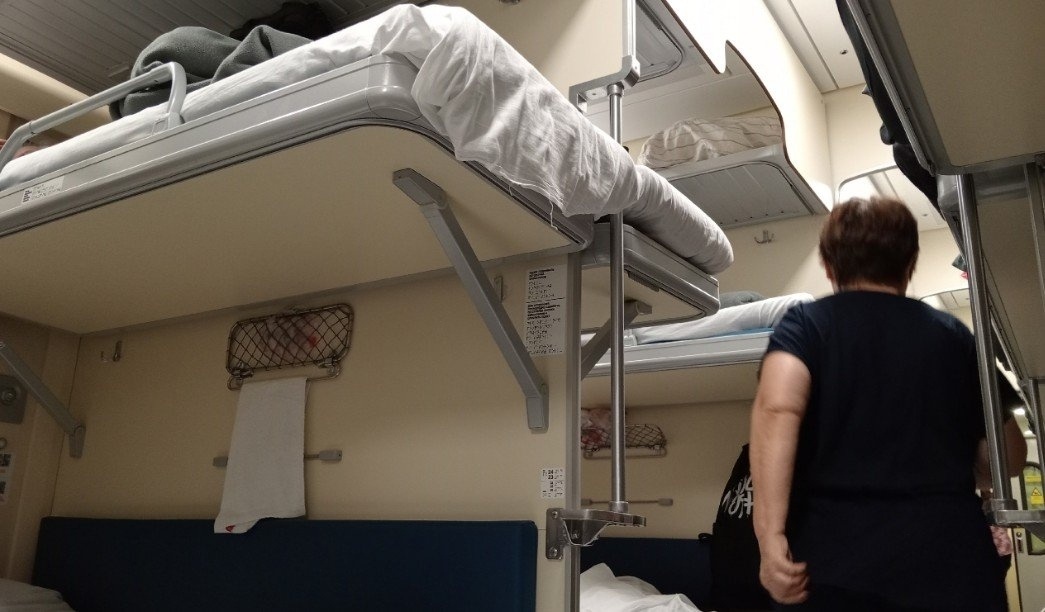На полке вольготно расположились та самая «просительница» и мальчик. Сняли обувь, разложили вещи, мальчик грыз яблоко, а женщина развалилась, как будто в санатории, не собираясь никуда двигаться.