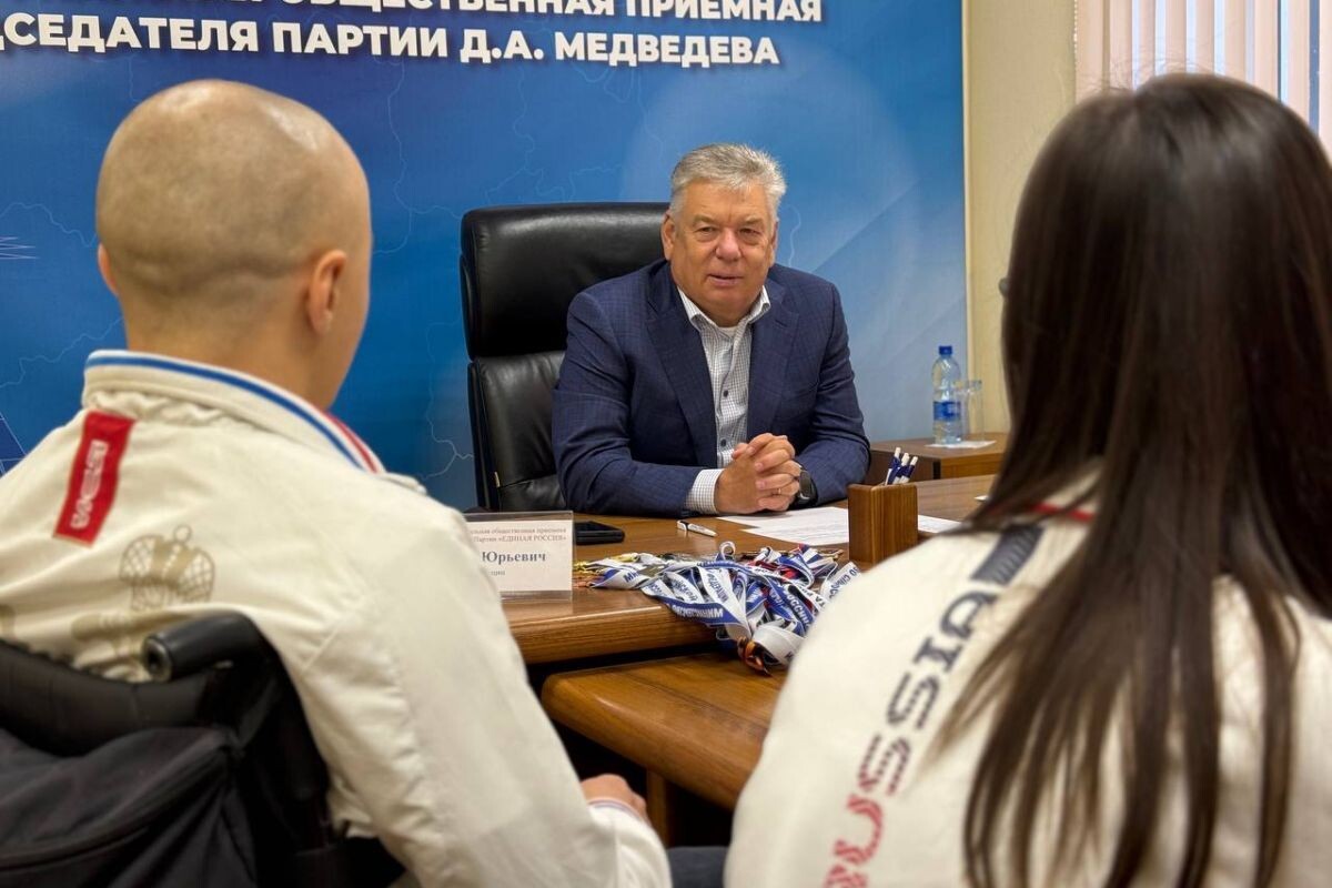 Одной из первых на прием была приглашена тульская паралимпийская чета пловцов недавно вступившая в брак - Андрей Тимошенко и Полина Антипина. Молодые люди обратились к Николаю Воробьеву с просьбой оказать содействие в решении жилищного вопроса, поскольку в настоящее время они вынуждены снимать квартиру.