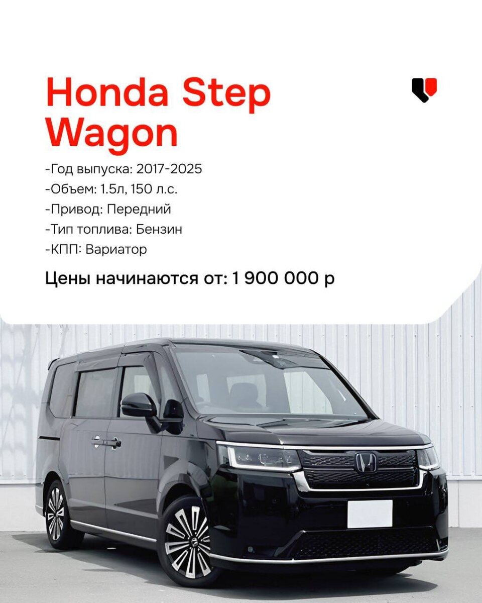 HONDA STEP WAGON -Год 2022-2025 -Объем 1.5 сс 🐎 150 л.с -Привод: Передний -Тип топлива Бензин -Коробка Вариатор Цена под заказ от: 1 900 000р NISSAN SERENA -Год 2022-2025 -Объем 2.0сс 🐎 150 л.с -Привод: Передний -Тип топлива Бензин -Коробка Вариатор Цена под заказ от: 2 000 000р. MITSUBISHI DELICA -Год 2022-2025 -Объем 2.3сс 🐎 145 л.с -Привод: Передний -Тип топлива Дизель -Коробка Автомат Цена под заказ от: 2 600 000р. HONDA FREED -Год 2019-2022 -Объем 1.5 сс 🐎 129 л.с -Привод: Передний -Тип топлива:Бензин -Коробка Вариатор Цена под заказ от: 1 500 000р. TOYOTA WISH -Год 2012-2017 -Объем 1.8 сс 🐎 130 л.с -Привод: Передний -Тип топлива Бензин -Коробка Вариатор Цена под заказ от: 1 100 000р. NISSAN NV200 -Год 2021-2024 -Объем 1.6 сс 🐎 113 л.с -Привод: Передний -Тип топлива: Бензин -Коробка Вариатор Цена под заказ от: 1 100 000р. TOYOTA ESQUIRE -Год 2017-2021 -Объем 2.0 сс 🐎 152 л.с -Привод: Передний -Тип топлива: Бензин -Коробка Вариатор Цена под заказ от: 2 100
