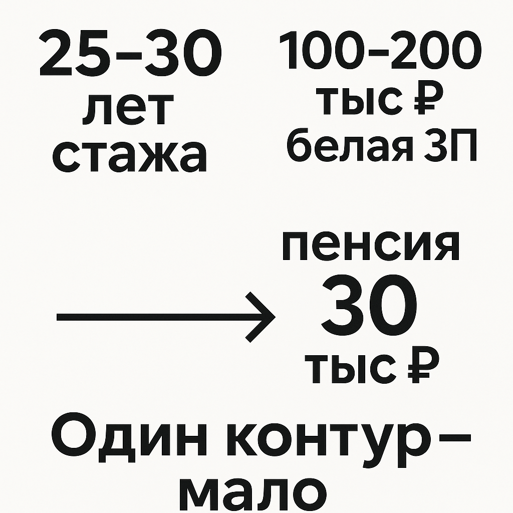 — «Экономисты предупреждают: одной госпенсии может не хватить для 30 тыс ₽ в реальном выражении; ориентир — 25–30 лет «белого» стажа на 100–200 тыс ₽ и/или собственные накопления (10–15% дохода)». Чек-лист (сохраните): #Пенсии #ИПК #Зумеры #ФинансоваяГрамотность #НПО