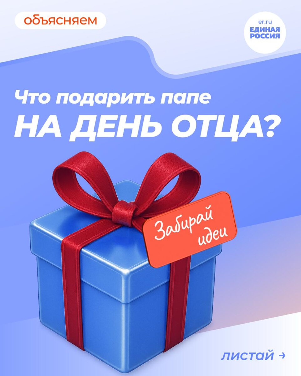 Собрали интересные идеи подарков для вашего папы. Надеемся, наша подборка вам пригодится. Единая Россия в Telegram Единая Россия в MAX Единая Россия в Вконтакте Единая Россия в Одноклассниках