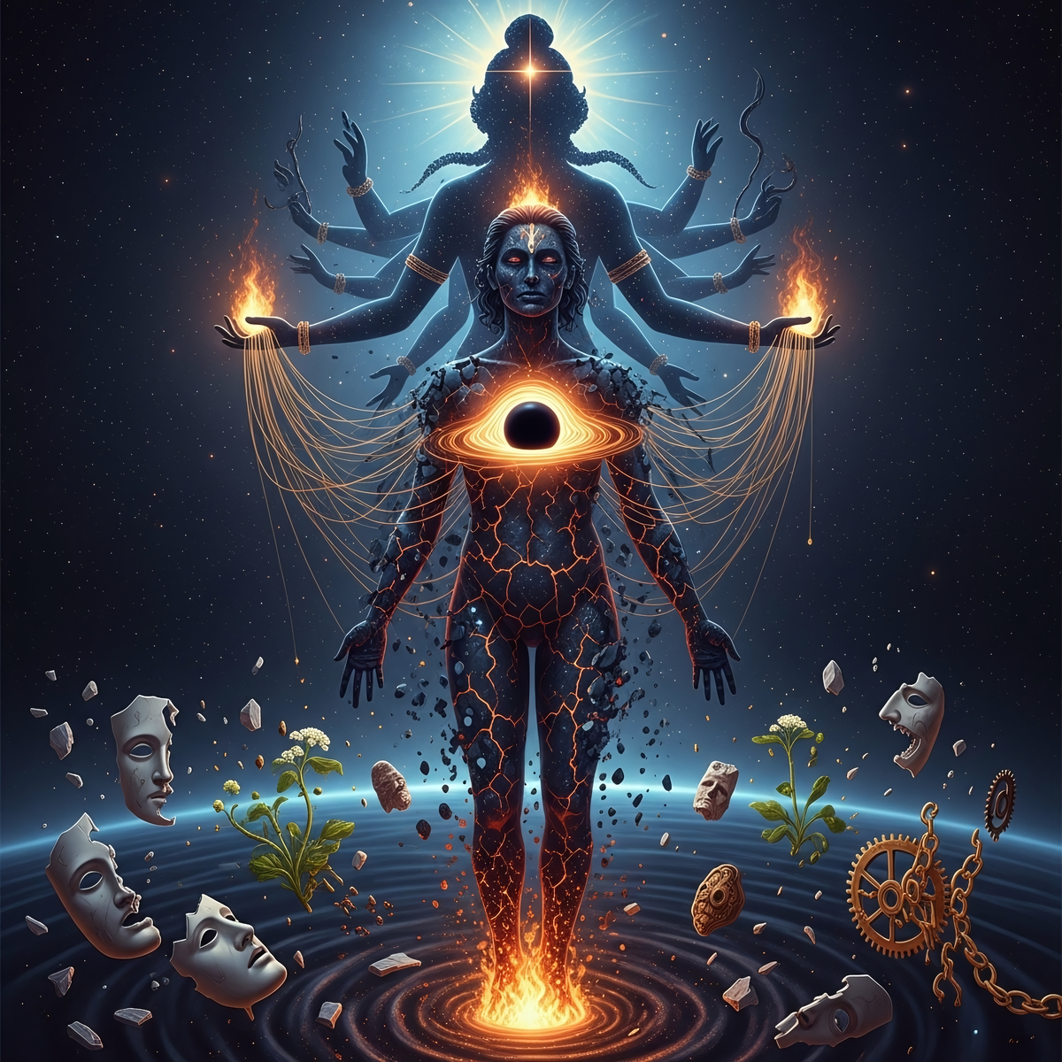 Когда приходит это состояние, оно приходит как Каларатри (Kālarātri) — Ночь Времени, пожирающая все построения ума. Это не милостивая мать, утешающая дитя, а космическая Разрушительница, чьё сострадание заключается в безжалостном уничтожении всех иллюзий.