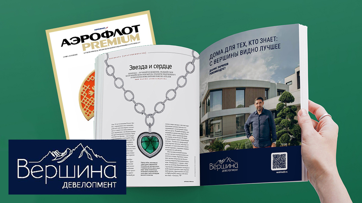 В октябрьском выпуске застройщик недвижимости премиального класса «Вершина Девелопмент» (Сочи) при участии рекламной компании Авиа Адв разместил имиджевую рекламную кампанию в журнале Аэрофлот Premium для пассажиров бизнес-класса. Амбассадором компании является известный хоккеист Данис Зарипов, который изображен в рекламном модуле на целую полосу, с позиционированием рекламы на специальном месте.