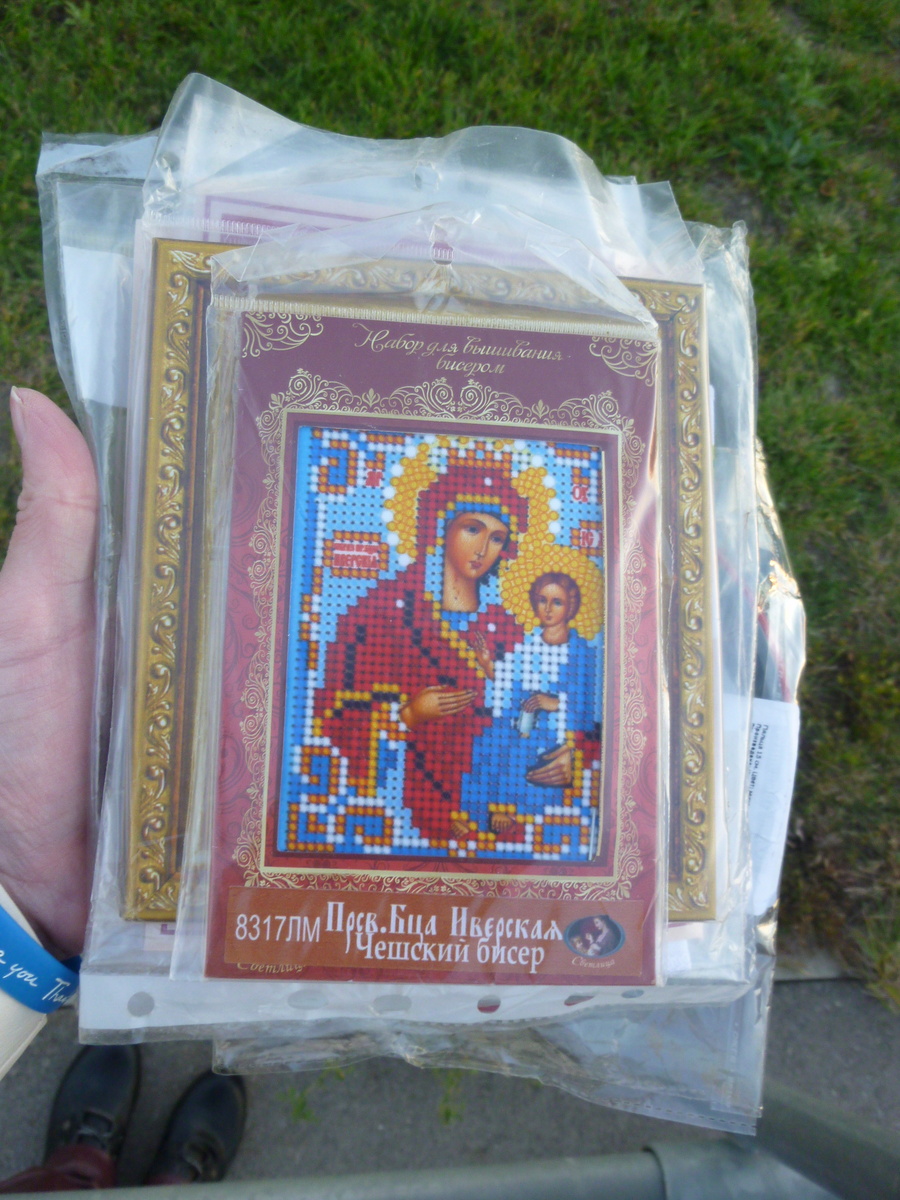 Всем здравствуйте. К концу сентября меня потянуло вышивать иконы. Начала с небольшой иконы крестиком по схеме для воскресной школы (покажу позже). Потом заказала на маркетплейсе несколько наборов для вышивки бисером. Замечу, что бисером вышивала мало (всего пару картин), и вообще довольно давно не вышивала. Первым набором, за который взялась, стал набор марки "Светлица" - вышивка бисером иконы "Пресвятая Богородица Иверская". Эта икона почитается как чудотворная. Начала работу 6 октября 2025, а закончила (включая оформление в рамку) - 15 октября. Вышиваю сейчас медленно (раньше бы дня за 3 сделала), так как почти нет времени, только час-два удаётся выкроить поздно вечером. В этом материале поделюсь своими впечатлениями о данном наборе. Оформление у него красивое (хорошо выглядит в подарок), картонная упаковка выполнена как рамка. Формат работы небольшой - 7,5 на 10 сантиметров. Есть вкладыш с подробными рекомендациями по вышиванию. Отмечено, что все схемы сделаны с настоящих икон. Прил
