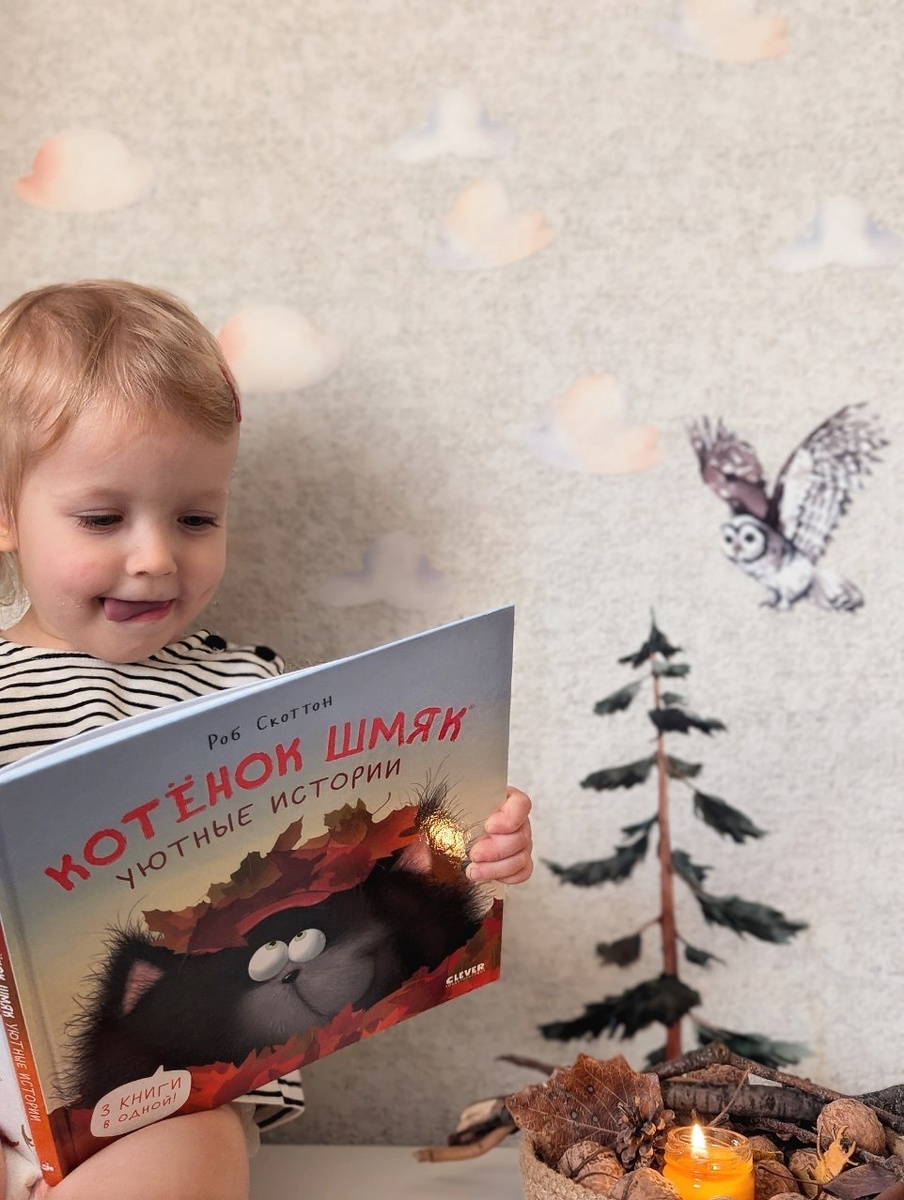 Мы тут болеем и стараемся окружать себя теплой атмосферой осени, но и о развитии не забываем. Конечно, каких-то активных занятий от ребенка в период болезни ждать не стоит. Зато сейчас самое время покопаться в дарах осени, подуть на свечку с запахом тыквенного пирога и почитать уютные осенние истории. Со Шмяком мы познакомились недавно, но эта книга уже стала важной частью наших осенних чтений. Признаться, я до сих пор точно не могу определить, на какой она возраст. Но Есения её любит за привлекательные иллюстрации и малое количество текста на странице, а Дёма — за забавные истории. Да и шикарное оформление нравится всем без исключения, мы в восторге от картинок. Поэтому мне кажется, что книга должна зайти детям лет от двух до семи. Классный сборник. 📷 Издательство @clevermedia ☀️ Канал «Мам, смотри!»