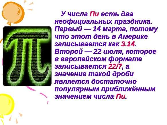 π ≈ 3,1415926535… — неверная запись, так как знак ≈ (приблизительно равно) здесь неуместен.