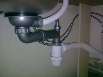 3. Подключение к канализации: Воткните отвод сифона в канализационную трубу. Если используется жесткая пластиковая труба, соединение уплотняется резиновой манжетой. Если гофра, то ее просто вставляют в канализационный раструб, и она держится за счет собственной упругости. Не растягивайте гофру без необходимости — это ухудшает слив.