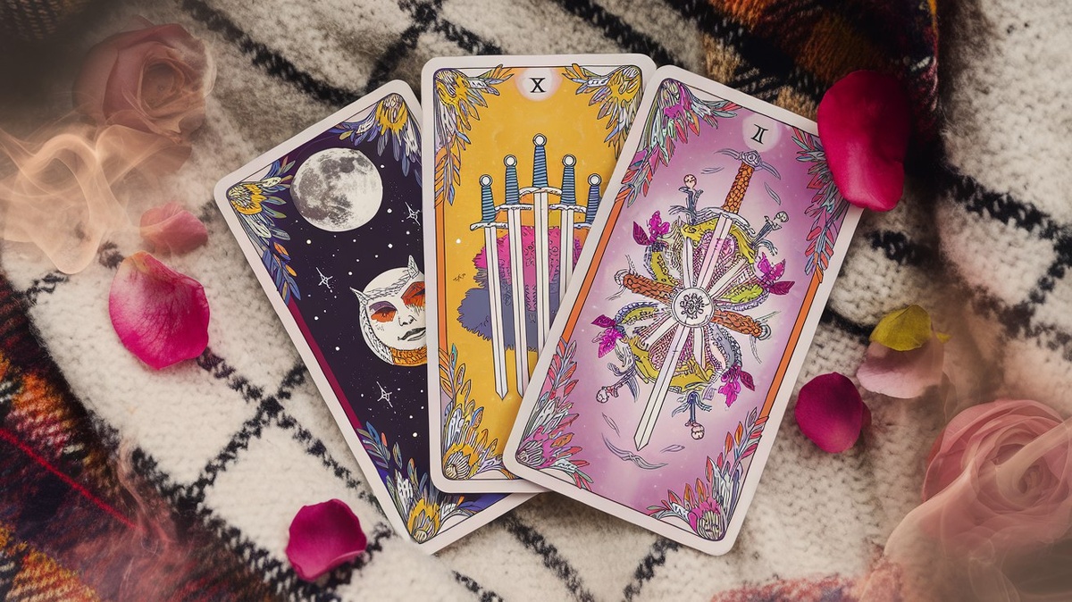 Вау, у нас тут шоу под кодовым названием “Хочу понять, но мозг отказывается”. Смотрим карты: Луна, 5 Мечей и Туз Мечей