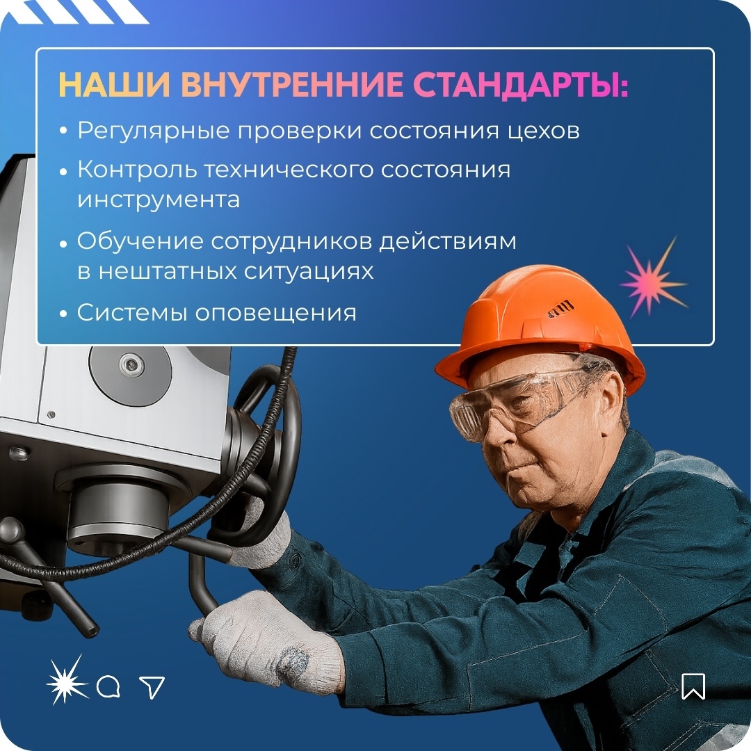 Каждый день начинается с инструктажа, проверки оборудования и обязательного использования средств индивидуальной защиты. Мы убеждены: безопасность — это работа, где важен каждый шаг и внимание к деталям.