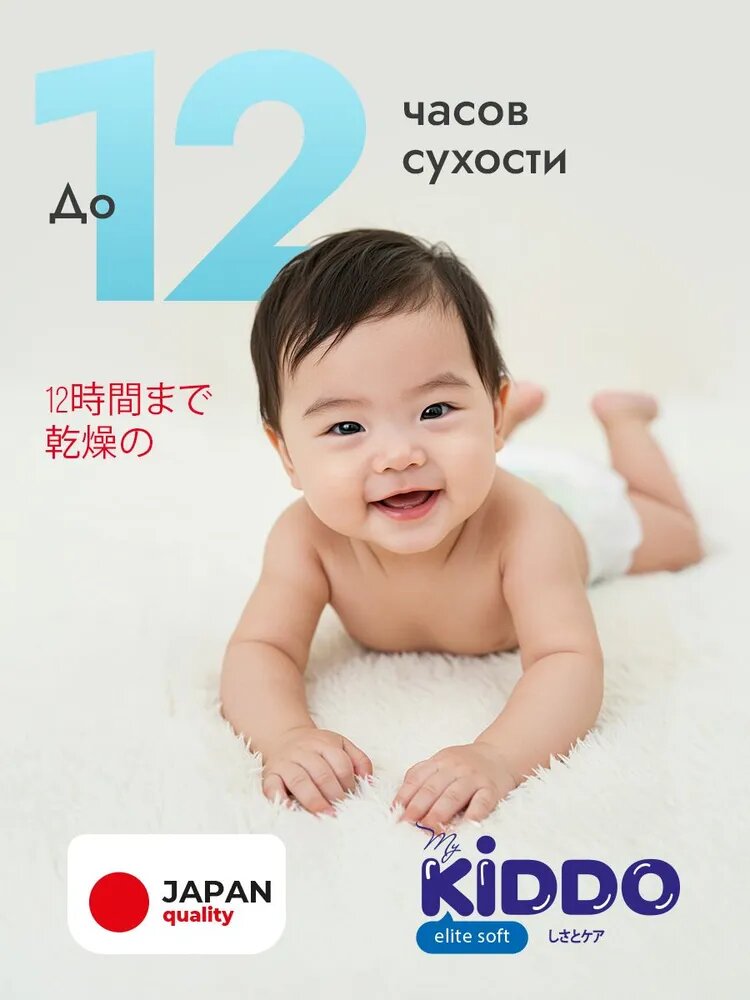Вернулся домой, сразу нашёл подгузники-трусики Kiddo Elite soft на любимом маркетплейсе, заказал большую упаковку. Пришли на следующий день. На упаковке написано «мягкость и комфорт», размер подходящий.