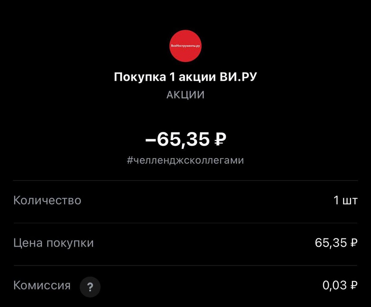 Всем привет! Покупка на сегодня #294, обращаю внимание покупаем один лот. Статистика портфеля на стороннем сервисе, можно посмотреть по "ссылке" Напомню это челлендж с коллегами, каждый рабочий день пополняем брокерский счет на 250 рублей и инвестируем. Если возникли вопросы или есть не понимание, что делать. Задавайте «тут» Покупка #294 🟢 “ВИ.РУ” 65.35 rub #VSEH 1 лот #каждыйсможет #челенджсколлегами 🚪finbazar ✈️ Стас Мироненко 📹Youtube | 📹Rutube