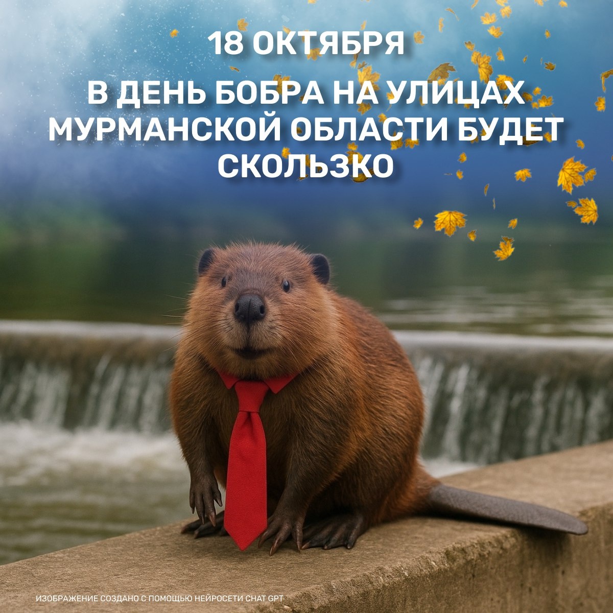 🌥В Кольском Заполярье 18 октября, в День бобра и День галстука, ожидается облачная с прояснениями погода. Местами гололедица. Небольшие, днем на западе области умеренные осадки в виде мокрого снега. Ветер западный, юго-западный умеренный, днем местами сильный. Температура воздуха ночью от 0 до -5 градусов Цельсия, днем -1… +4. 🤗18 октября — День бобра. Удивительный факт: бобр копит жир и полезные вещества в хвосте, поэтому зимой он в два раза толще, чем летом. А еще хвост — это средство сигнализации. При опасности бобр бьет им по воде, предупреждая собратьев. 👔Кроме того, 18 октября — День галстука. В России моду на галстуки пытался ввести Петр I, но боярам аксессуар не нравился: они называли его «змеюкой». Одним из популяризаторов галстука позже стал писатель Александр Пушкин.