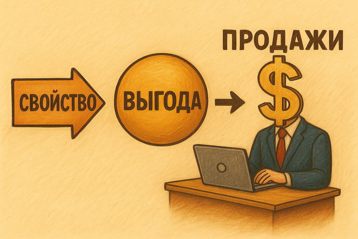 если не связал свойство продукта с выгодой клиента — продажи не будет. Казалось бы, элементарно. Это прописано во всех учебниках, тренингах и корпоративных презентациях. Но на практике большинство менеджеров по продажам останавливаются на середине. Они бодро рассказывают: