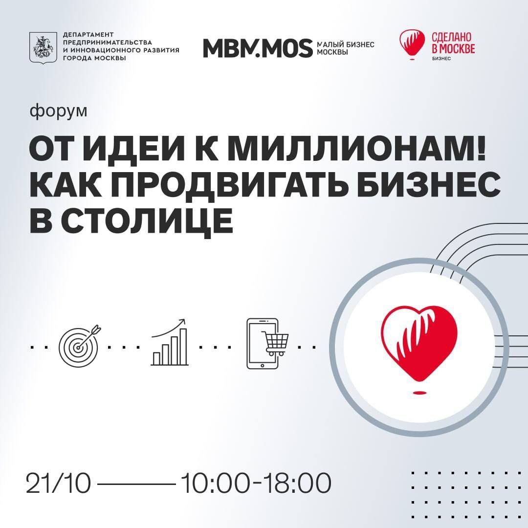 Насыщенный осенний сезон бизнес событиями. Вам что ближе? ГБУ "Малый Бизнес Москвы" организует встречу для передачи практических инструментов малому бизнесу и приглашает на форум «От идеи к миллионам! Как продвигать бизнес в столице». Основные темы: 🔴 как вырасти с поддержкой города и выйти на новые рынки 🔴 коммуникации с клиентами и новые каналы маркетинга 🔴 возможности ИИ для создания маркетинга и PR 🔴 стратегия успешных продаж на маркетплейсах 🔴 как прокачать личный бренд до уровня стратегического актива Кроме того, для участников конференции будет работать менторская гостиная, в рамках которой опытные эксперты проведут индивидуальные разборы кейсов и подскажут оптимальные решения проблем: ➡️ регистрация на первый поток (12:00 - 14:00) доступна по ссылке: https://clck.ru/3PkELx ➡️ регистрация на второй поток (14:00 - 16:00) доступна по ссылке: https://clck.ru/3PkEK2 📅Дата: 21 октября ⏰ Время: 10:00 — 18:00 📍Адрес: ЦАО | Космодамианская наб., 52, стр. 7, Центр событий РБК
