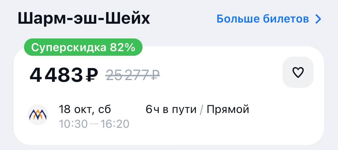 Цены на билеты в Египет существенно упали. Теперь из Петербурга в Шарм-эш-Шейх можно улететь всего за 4500 рублей. ────────── ⚡️Важные новости – без лишнего шума!⚡️ Подпишись на канал и получай только суть: оперативно, чётко, по делу! 👉 ИнфоСплетник | @infospletnik