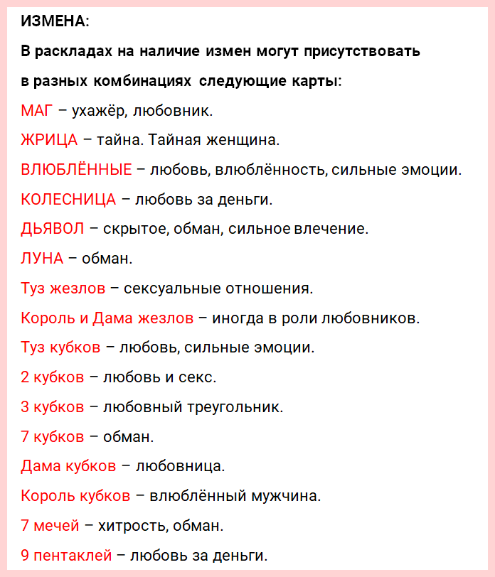 Друзья, помните мы составляли список карт, которые могут говорить об измене?