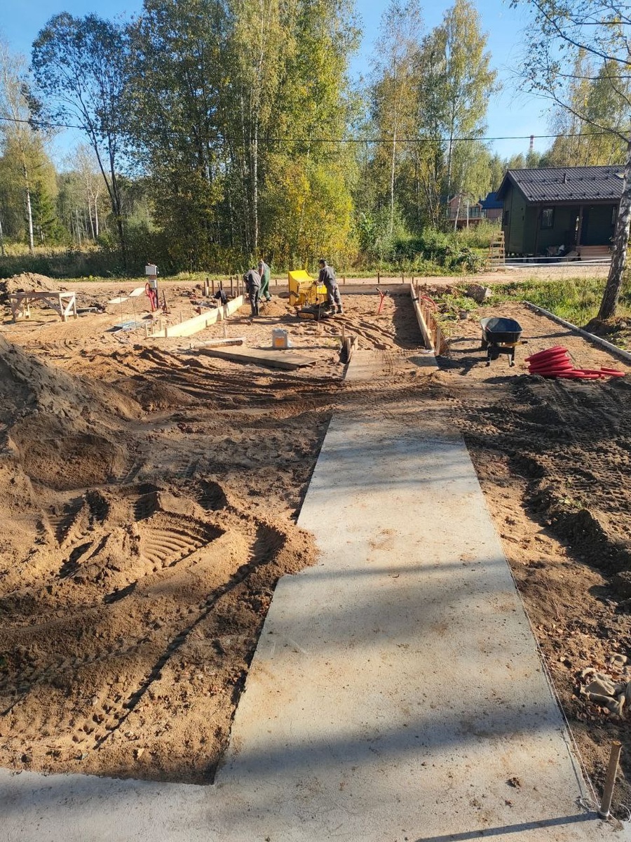 🛡Подготовка основания под бетонирование (часть 1) Конаково. Начали подготовку под бетонирование площадки перед домом 👷♂️ 🎖 Сначала снимаем растительный слой, выравниваем основание и формируем песчаную подушку. Этот этап решает, насколько ровным и долговечным будет бетон. 🔖Песок засыпаем слоями, проливаем водой и тщательно трамбуем — без спешки. Потом выставляем опалубку по уровню, чтобы задать контуры будущей площадки. 🔖Всё по классике: если основание сделано правильно — бетон потом ложится как надо и не трескается. Завтра покажем вторую часть — засыпку и трамбовку щебня. Там уже начнётся «мясо» 💪 💙 DerevDomMSK ℹ️ Смета 🖥 Сайт #строительство #бетон #DerevDom #Конаково
