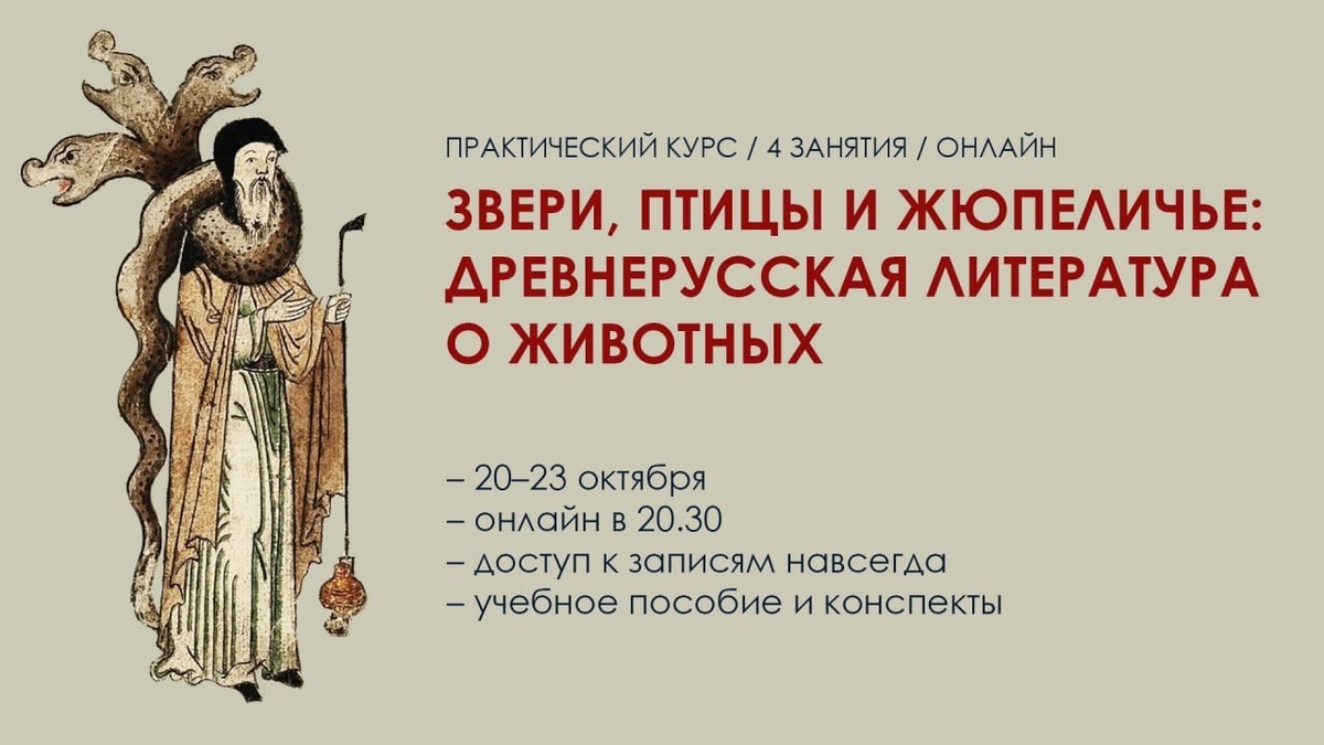 Кто должен смотреть не отрываясь на своего детеныша, а боится голого человека? Кто из зверей молится Богу, а кто является образом дьявола? В понедельник стартует новый курс ЗЕЛО - теперь о животных! 8 часов будем читать и обсуждать оригинальные древнерусские рукописи. Узнаем множество необычных свойств зверей и увидим десятки средневековых изображений. Участники получают специальное онлайн-пособие с текстами. Занятия в zoom, записи остаются навсегда, стоимость 4500 р. Для регистрации пишите t.me/butski91