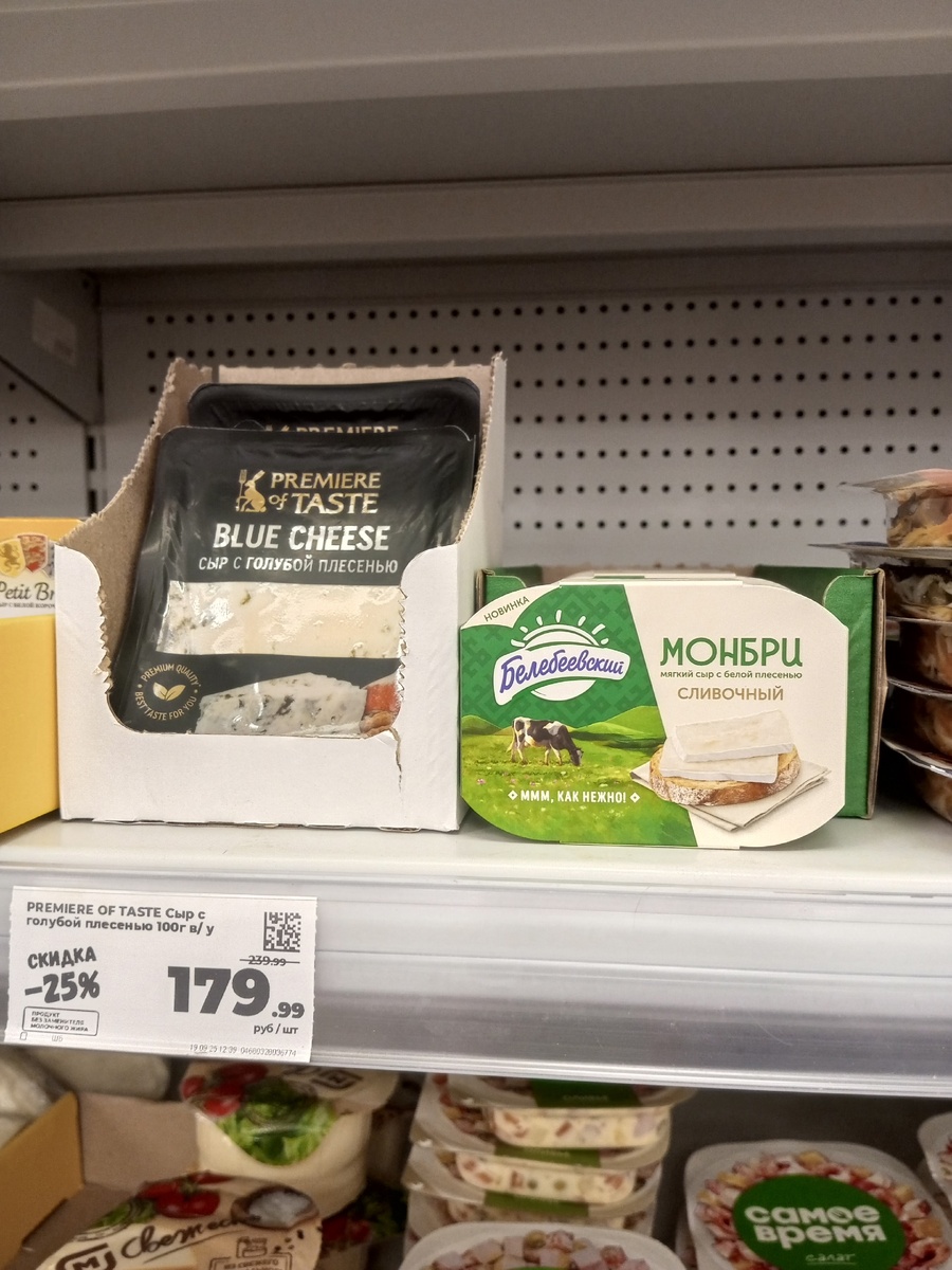 Сыры моя главная слабость, из-за которой я могу потратить в разы больше, чем планировала, но тут интереснее еще и другое. Если я все правильно поняла, то "Premiere of Taste" это еще один бренд, что представлен именно в "Магните", а потому некоторые продукты таким образом мы можем приобрести дешевле. Например, добавили в холодильник сыр с голубой плесенью за 179 рублей/100 гр, это слегка выгоднее, чем все те варианты, что я видела раньше, но такие изыски мне не особо понравились.