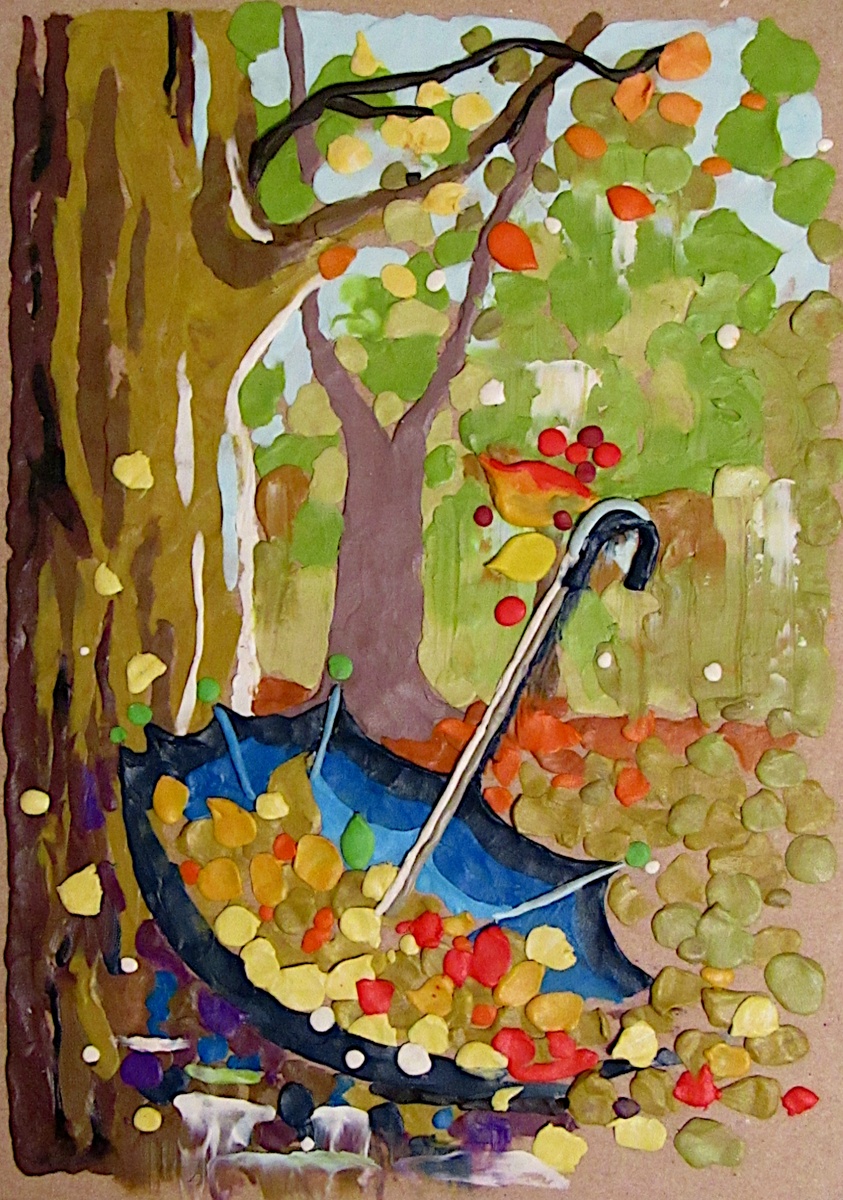 "Рисование" пластилином. Это моя первая работа в жанре, созданная пару лет назад. За все время творческих поисков опробовала множество материалов, но цветное изображение в пластилине было чем-то новым. В художке, конечно же, лепили рельефные композиции, но единым серым. Здесь же передо мной оказалась новая задача по вымешиванию оттенков. Техника подарила неожиданно интересное чувство между игрой в цвета и добавлением их в картинку. Вроде бы, чего необычного? Но когда в работе с красками настолько привыкаешь пользоваться палитрой, миг нанесения мазка кажется чем-то очень забавным. Вот добиваешься нужного тона, раз!, - и он уже на поверхности работы. Теперь такого оттенка больше нет. Нужен еще? Давай заново. Почему сразу не замешать с запасом? - Нет гарантии, что когда-либо потребуется эта смесь и как-то не хочется доводить ее до ума для новой картинки, добавляя другие цвета. Да и кусочек этот будет перекатываться и мешаться в коробке... Тем более, что повторное вымешивание одного и того