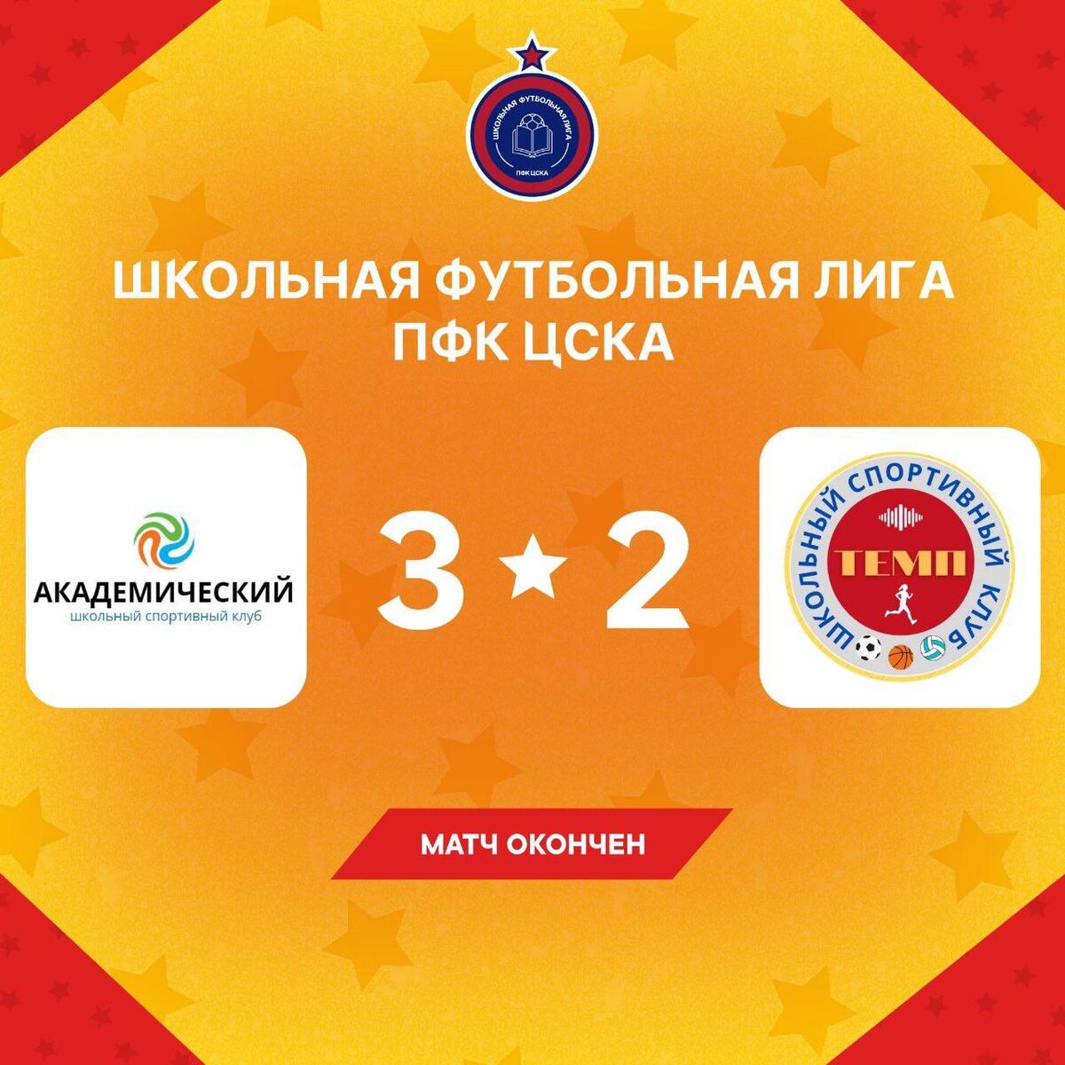 Урок ЦСКА ❤️Второй сезон школьной футбольной лиги ЦСКА начался для спортивного клуба «Академический» с настоящего испытания — в первом же матче ребятам предстояло сразиться с ФК «Темп», прошлогодним золотым финалистом. ⚽️На протяжении всей игры спортсмены шли в ногу с фаворитом. Наша команда действовала слаженно и смело, но, к сожалению, пропустила два мяча. 💭🧑🏻🦱Учитель физкультуры и тренер команды Артём Валентинович Доморацкий рассказал о ходе матча: «В конце произошло настоящее футбольное чудо! За минуту до финального свистка, когда все уже почти смирились с поражением, Артём сократил отставание в счёте и вдохнул в нас веру! А через несколько секунд, в яростной и упорной атаке, Александр сравнял счёт! Соперники были в шоке — они не успели даже понять, что произошло. И тут, как гром среди ясного неба, — Амир, капитан команды! Мы только что начали с центра поля. Амир забрал мяч, на всей скорости пронёсся к воротам, в красивейшем выходе один на один обыграл вратаря и хладнок