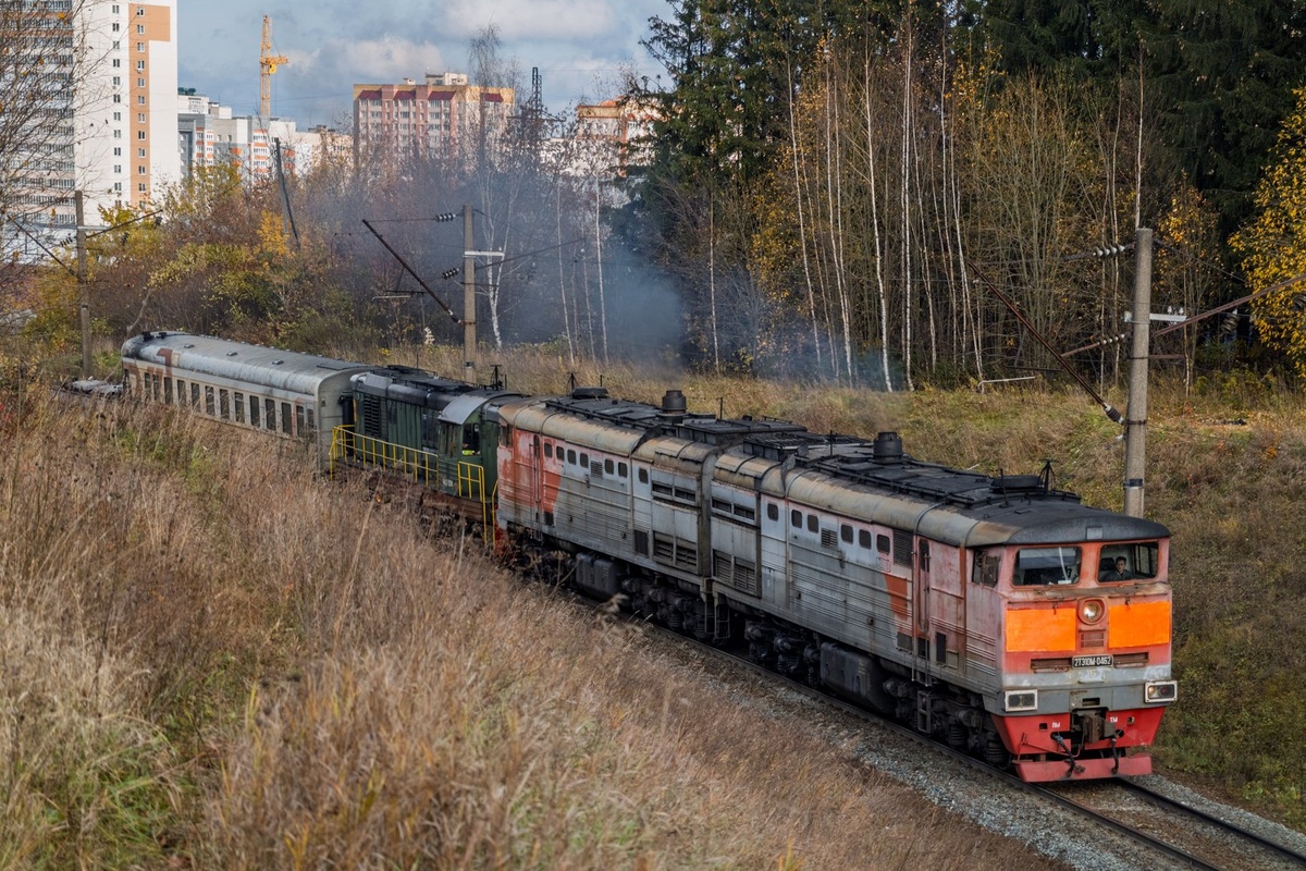 2ТЭ10М-0462 и ЧМЭ3-3594 с "хозяйкой" на перегоне Киров — Красносельский
