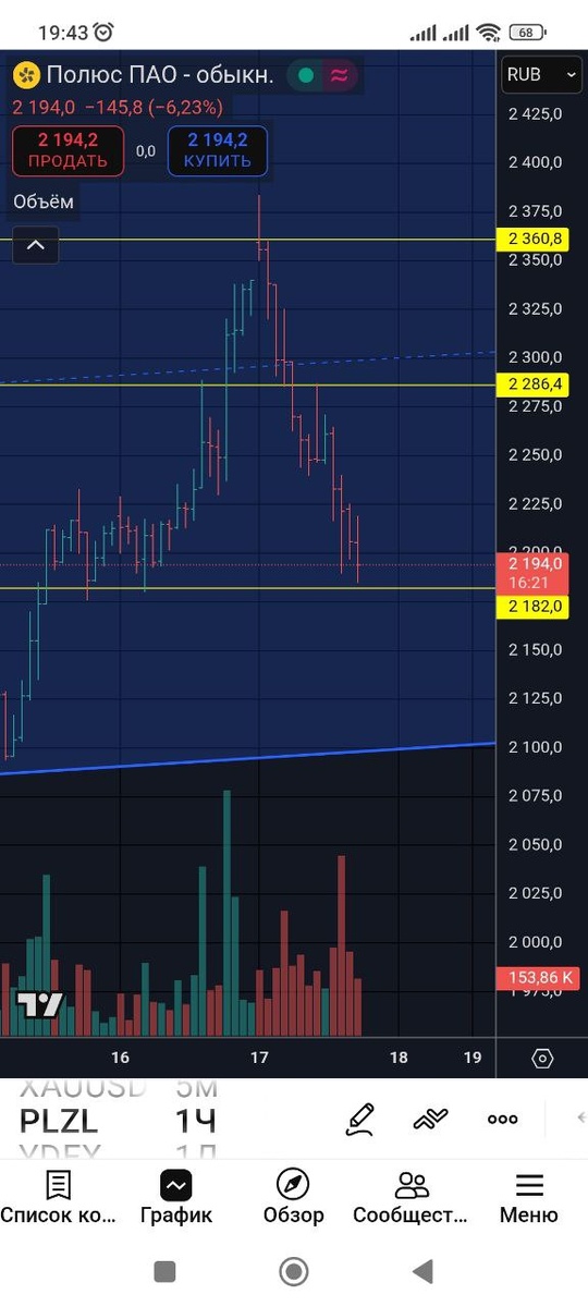 Считаю, что ниже 2170 не пойдёт и с этого уровня начнётся рост. Вчера писал аналитику по нему