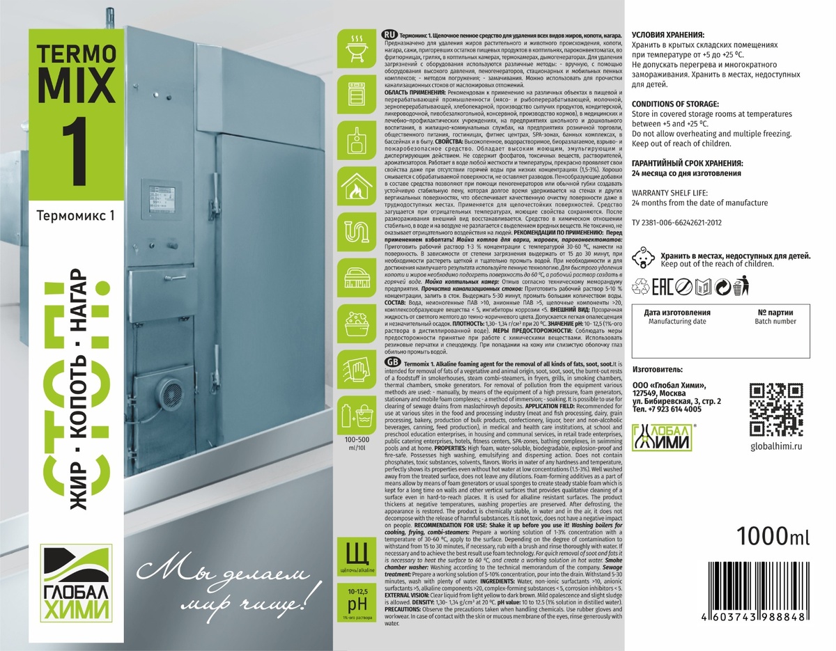 TermoMIX 1. Профиссиональное средство от жира, нагара и копоти. 100℅ Концентрат.