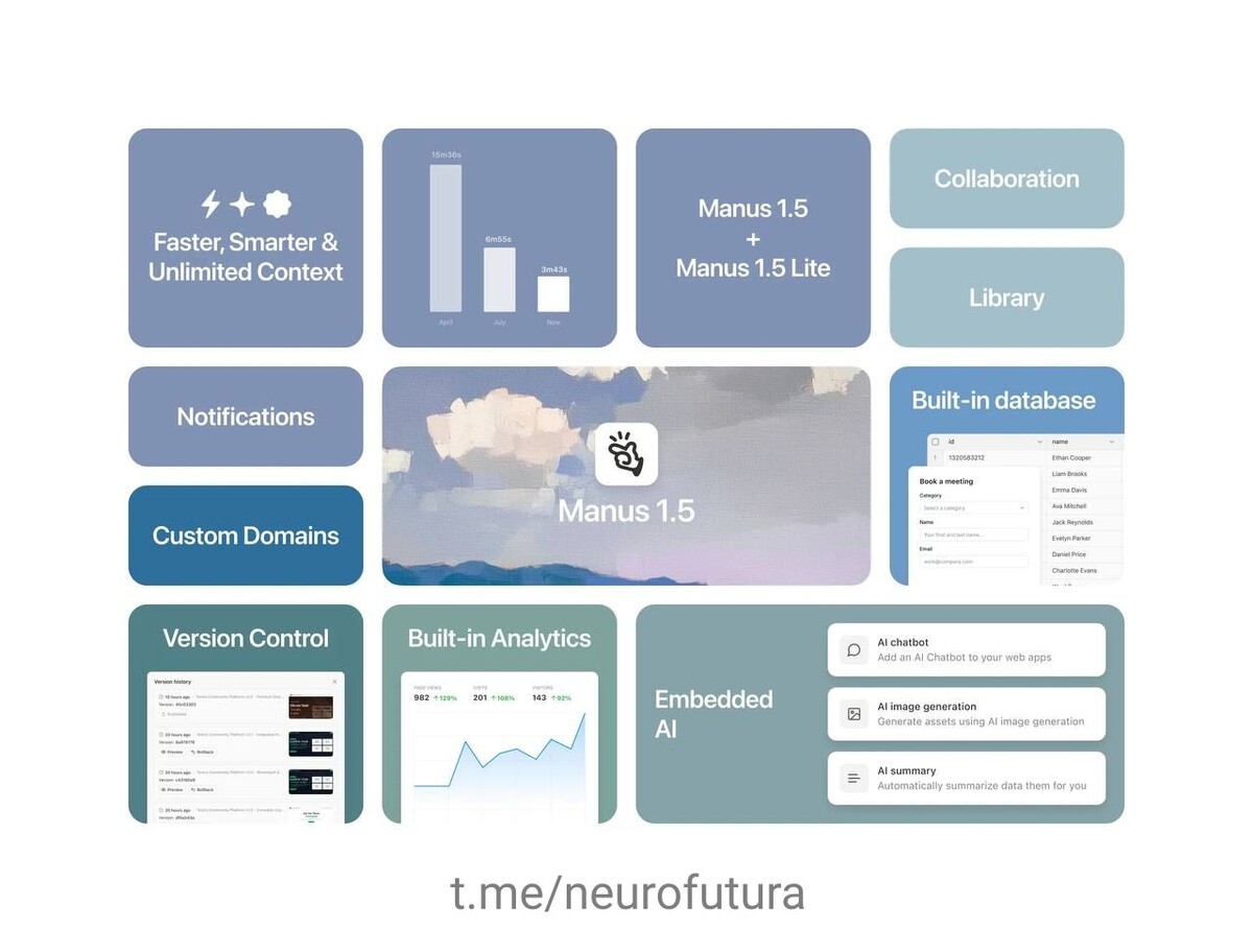 ИИ-агент Manus получил обновление и стал намного умнее. Теперь сервис способен решать сложные задачи гораздо быстрее: среднее время выполнения сократилось с 15 минут до 4. При этом качество работы улучшилось на 15%. Возможности Manus многогранны: * он может провести глубокий анализ акций любой компании и составить прогноз; * зарегистрируется в любой социальной сети и будет вести аккаунт; * найдёт нужную информацию в интернете и превратит её в объёмный доклад; * поможет найти самый дешёвый iPhone или спланировать отпуск. Использование Manus бесплатно. Наш телеграмм канал t.me/neurofutura