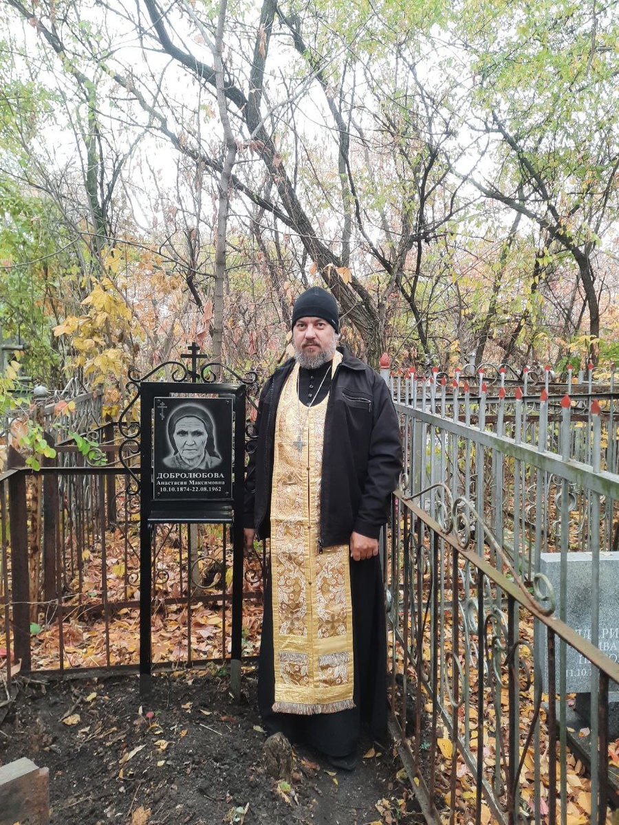 Старый и усталый поп на кладбище. Осеннем, старом, не ухоженном кладбище. Так и вспоминается ослик Иа...