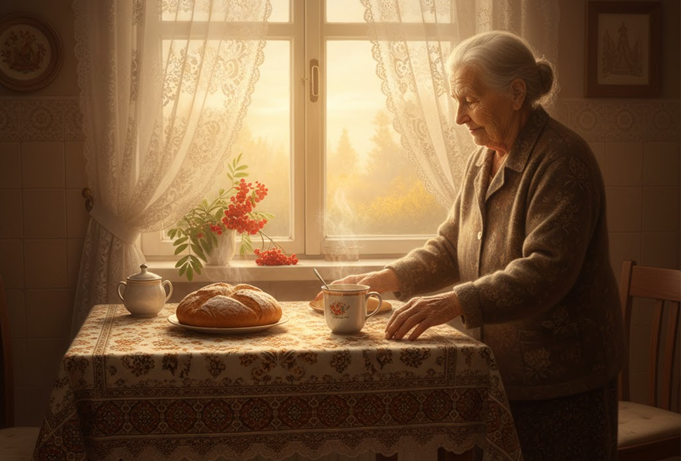 Утро было прозрачным, как сентябрьский воздух, — таким, когда даже чай в кружке кажется вкуснее, а свежий хлеб пахнет детством. Наталья Андреевна проснулась раньше всех, как всегда, потихоньку прокралась на кухню — и остановилась, прислушиваясь к редкому, но такому родному ощущению: в доме есть надежда.