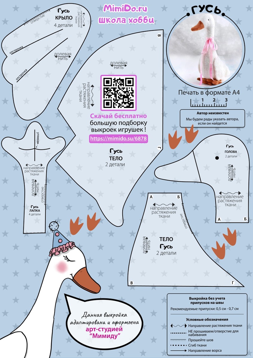 Выкройка Гуся 🎁 Подарок для всех, кто любит шить и вдохновляться! Забирайте АЛЬБОМ с 22 выкройками 👉 vk.cc/cL35qk бесплатно! 🎀 Откройте для себя новые идеи! Внутри вас ждут: ✔️ выкройки и МК ✔️ полезные статьи и ссылки для рукодельниц ✔️ полезности и море вдохновения! ⏳ Доступ открыт только три дня — не упустите! ♻️ Мы делимся открытыми выкройками, чтобы вдохновлять вас на новые проекты. Не бойтесь дорабатывать и создавать свои уникальные версии!