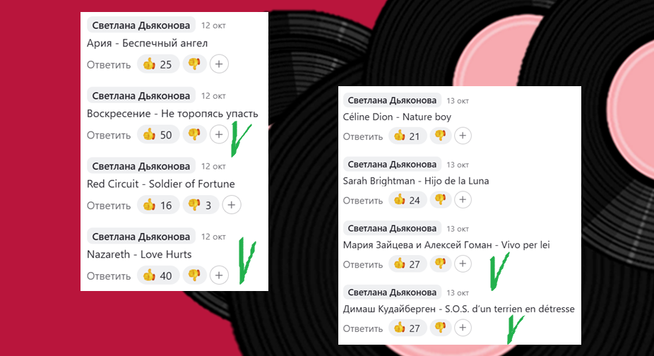 Второй тур, 3-я группа песен. Здравствуйте! Продолжаем конкурс каверов. Напомню условия второго тура. На этом этапе для выхода в полуфинал песням необходимо набрать 40 голосов. Если ни одна из них не наберёт нужное количество лайков, проходит та, которая наберёт голосов больше, чем другие. В первом туре мы сравнивали кавер с оригиналом, нам было сложнее выбирать, теперь всё просто - сравниваем просто песни в том исполнении, которое нам предлагают участники конкурса. Во всех турах голосуем трое суток. Предупреждаю новеньких читателей: в этом блоге не принято ставить дизлайки песням, а если они всё же появляются, мы их засчитываем как лайки. Самое время посмотреть, как читатели проголосовали в 1-й и 2-й группах: По нашим правилам в полуфинал проходят четыре песни: Почему получились настолько разные итоги? Покажу, сколько читателей увидели статьи на сегодняшний день - вы всё поймёте. В первой - 1506 человек, во второй - 144. Поэтому считаю, что наши правила справедливы. И песни из вто