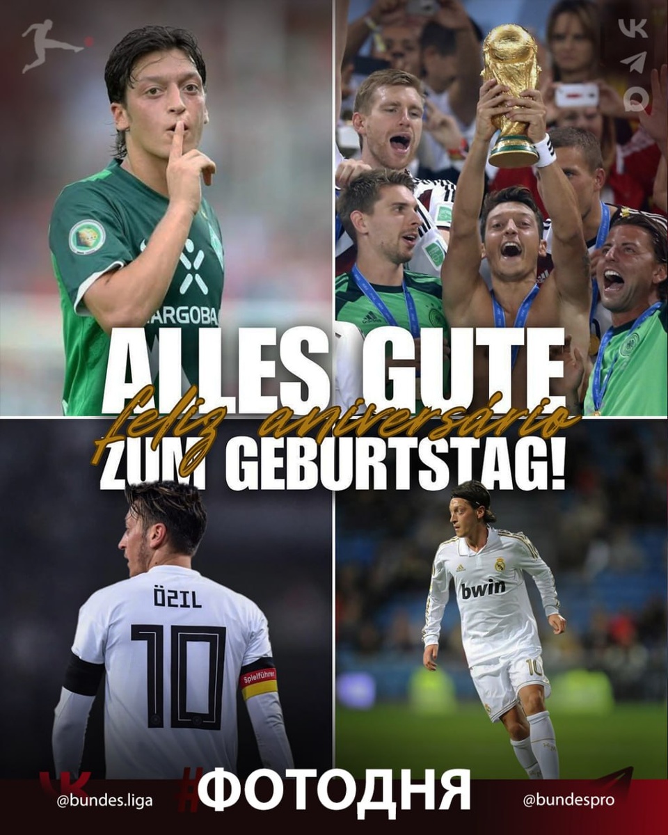 #ФотоДня 📸 15 октября Озилу исполнилось 37 лет 🇩🇪🎂 С Днем Рождения, Месут! Немецкий футболист, атакующий полузащитник. Чемпион мира 2014 года в составе сборной Германии. В основном играл как атакующий полузащитник, но также мог выступать на позиции вингера. 🏆 Это Бундеслига, брат! #Бундеслига
