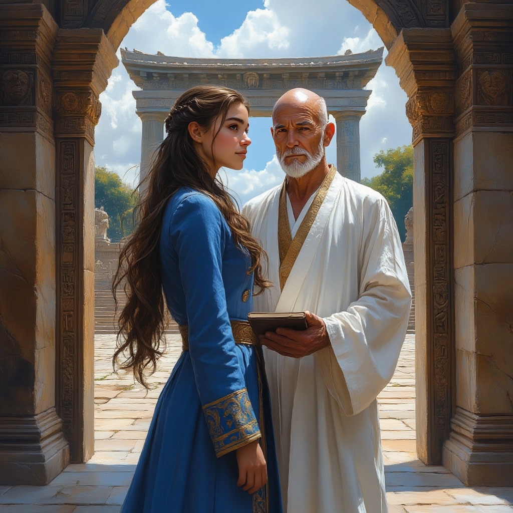Эвелина застыла как вкопанная, не в силах пошевелиться. Её глаза широко раскрылись от изумления, когда она увидела хранителя знаний, стоящего у величественных врат Атлантиды. В её голове проносились мысли, одна безумнее другой. «Это невозможно», — шептала она про себя, но реальность была перед ней. Хранитель, окутанный лёгкой серебристой дымкой, стоял неподвижно, словно статуя, высеченная из самого времени. Его глаза, глубокие и мудрые, излучали мягкий, успокаивающий свет, который будто проникал в самую душу Эвелины. Придя в себя от первого шока, она наконец смогла заговорить: — Не ожидала меня здесь увидеть? — раздался в её голове спокойный голос хранителя. — Нет… То есть да… Я не знаю, — пробормотала Эвелина, чувствуя, как сердце колотится в груди. — Я… я чувствовала, что эта встреча должна произойти. Профессор, стоявший рядом, уже увлечённо беседовал с местными атлантидцами. Эти удивительные существа двигались с грацией, которой позавидовали бы самые опытные танцоры. Их кожа перели